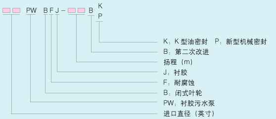 PW-BFJ型系列耐磨耐腐耐温衬胶污水泵,其过流部分采用进口橡胶高温硫化模压成型,具有良好的耐磨耐腐耐温性能。整体结构简单、运转平稳、噪声低,泵密封采用新型机械密封及新型K型骨架油密封装置,解决了泵的泄漏问题,是现代环保领域较理想的节能泵。实践证明:可取代其它的普通型防腐型污水泵,其运行成本低、使用寿命长,是当今污水泵中的佼佼者。